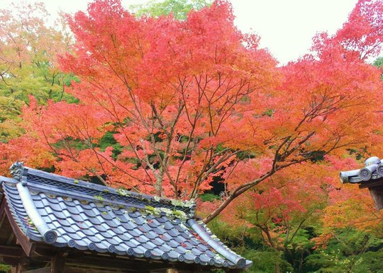 でも、日当たりのいい場所にある木は、鮮やかな紅に彩られていましたよ。紅葉のシーズンだけでなく、なぜかこのお寺に来ると、ホッとした気分になれるのです。心を安らげてくれる何かがあるのでしょうか。