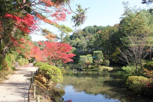 浄土庭園や本堂の周りで真紅の葉をまとって枝を伸ばすイロハモミジの見事なこと…しばし、カメラのシャッターを押すのさえ忘れ見とれておりました。