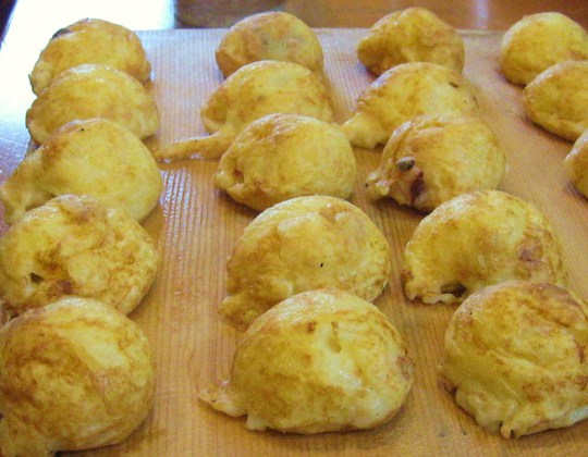 たっぷりの卵で溶いた生地に茹でたタコ