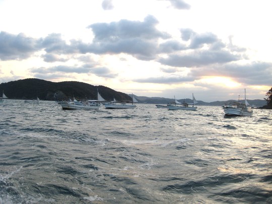 本漁師に交じって中ノ瀬戸周辺を流す釣り船 |