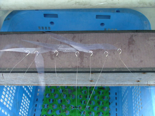 昨日は、一度にハマチが5匹掛かったことがありました。(あがってきたのは2匹だけで残り3匹はハリスを切って逃げていきました。