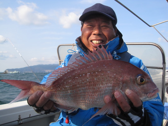 当日は小潮で、北西風が強くてべストコンディションではなかったのですが、船長がなんとか釣らせようと中ノ瀬戸の周りで粘ってくれたお蔭で、全員がマダイの顔を見ることが出来ました。