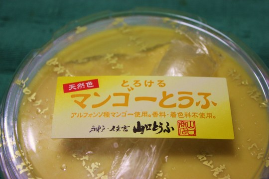 このゆばどうふは、この前紹介しましたが、ここの商品の中で唯一残っていたのがとろける「マンゴーとうふ」でした。
