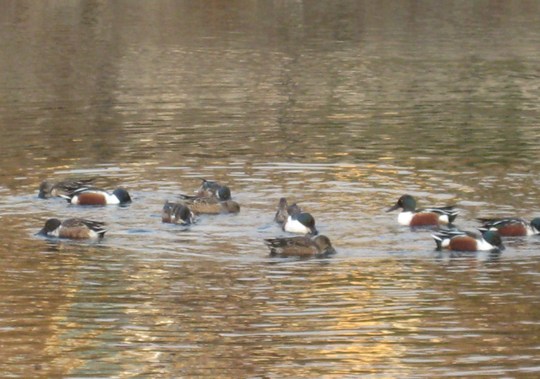 副池によくやってくるのは、ヒドリガモとハシビロガモの2種でマガモは少ししかいません。