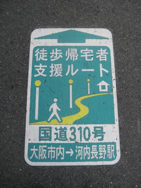 これって意味があるのでしょうか。帰宅困難者支援ルートの表示は、大阪市内から河内長野駅となっているのに、最初と終わりがなくて途中の一部だけ対策が取られているなんて、まさにお役所仕事の典型ではないのでしょうか。