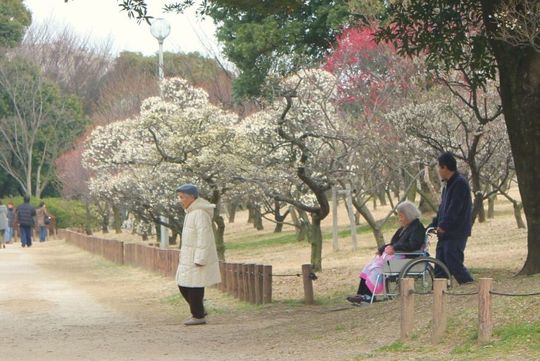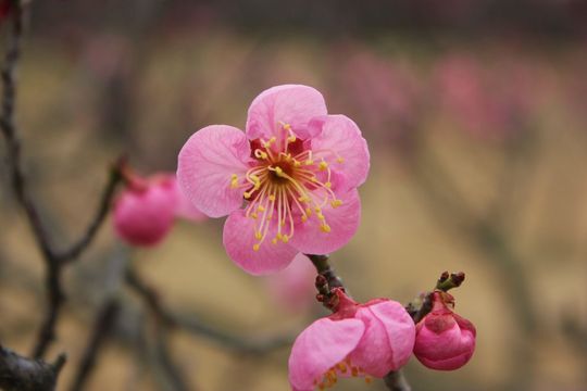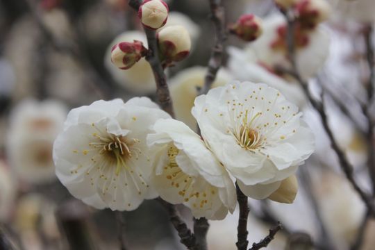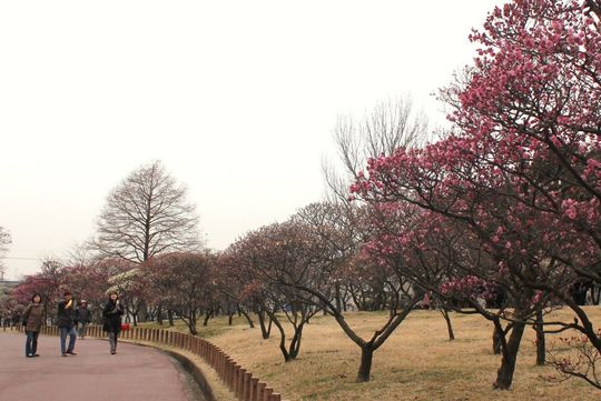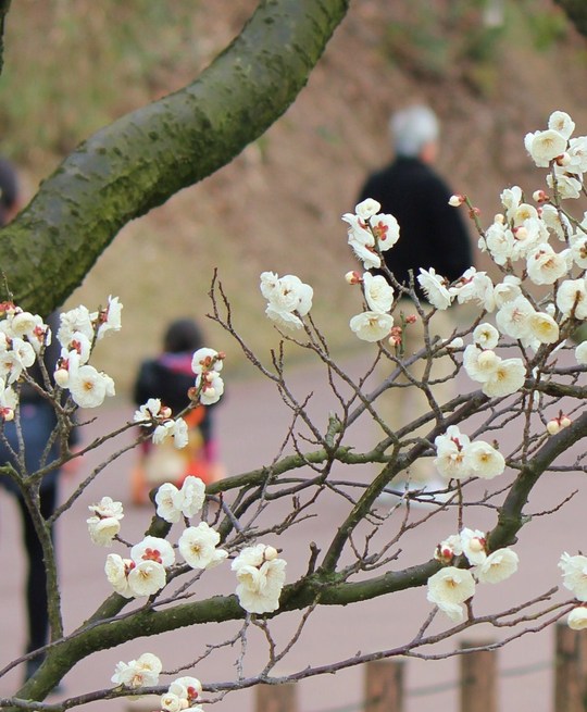 見ごろは2月中旬からと聞いていたので、いそいそと出かけたのですが、今年は寒さが厳しかったせいか開花がかなり遅れており、まだ五分咲きといった程度。見ごろは3月初旬になりそうです。