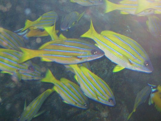 写真を見てもお分かりだと追うのですが、普通、水槽を通して中の魚を映しても、これほどきれいに写らないと思うのです。やはり水が奇麗なんでしょうね。