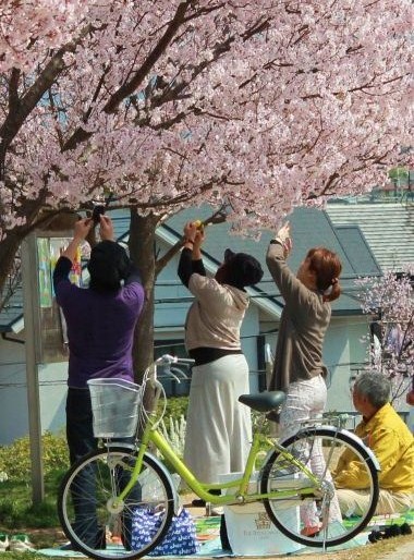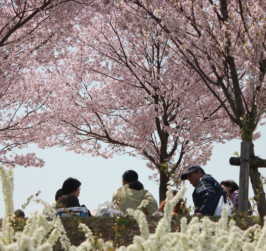そろそろ見ごろを迎えたのではと出かけたのですが、誰しも考えることは同じですね、駐車場は空きを待つ車の行列、サクラの下はビニールシートを広げた家族連れなどが、それこそ”どんだけ〜ぇ”というほど詰め掛けていましたよ。