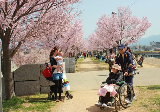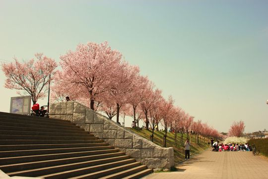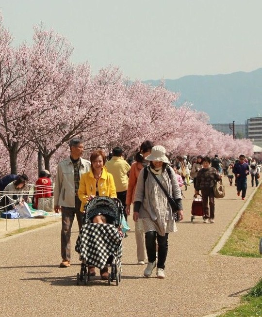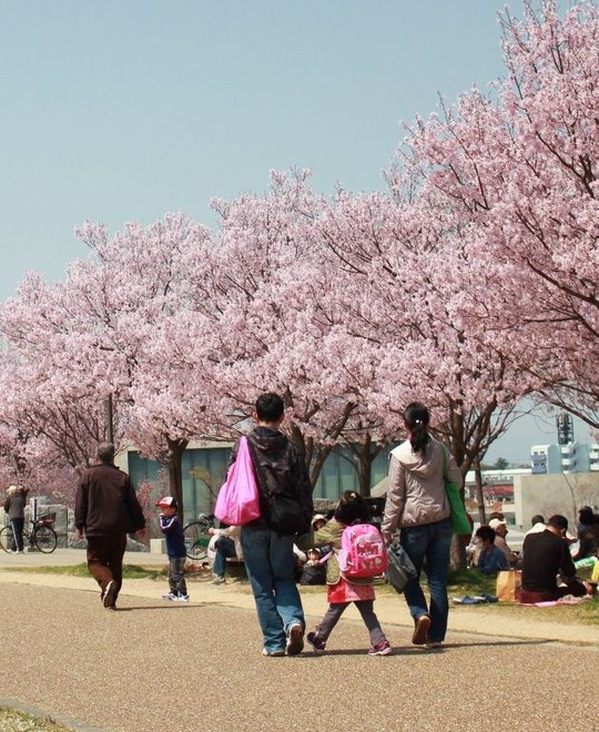 そう、お散歩を兼ねて日本最古のため池といわれる狭山池へお花見に出かけたのです。狭山池の堤には、平成の通り抜けと呼ばれているサクラ並木があります。