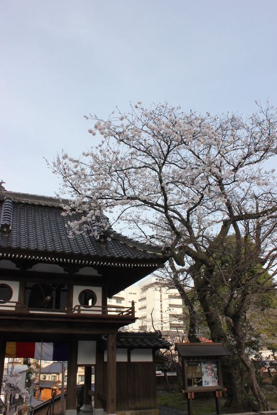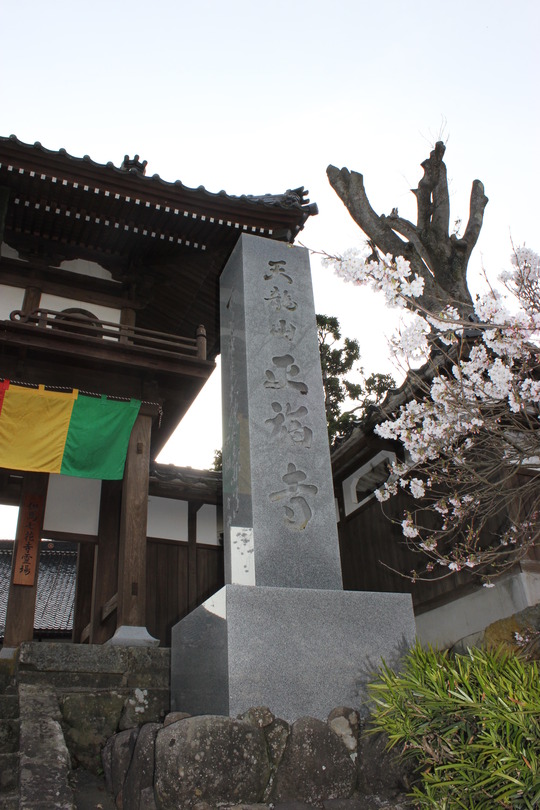 このお寺の境内には、県の天然記念物に指定されている正福寺桜があります。キンキマメザクラとヤマザクラの自然交配種だといわれており、学名はプルヌル・タジマエンシス・マキノ。最後にマキノとあるのは、有名な植物学者、牧野富太郎先生が発見されたものなんでしょうか?。