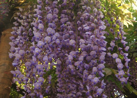 春日大社の境内には、樹齢800年とも言われる見事なふじの木があって、花穂が長く伸び地面に垂れるようになるところから「砂ずりの藤」と呼ばれているそうです。