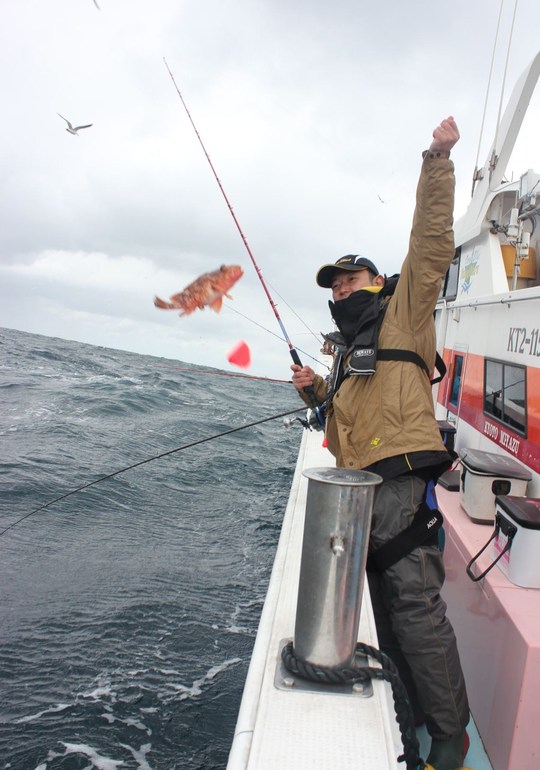 波予想1・5mのはずが3mを超える大波で、とても浦島グリまでたどり着けるはずもなく、冠島周りでの根魚釣りになりました。