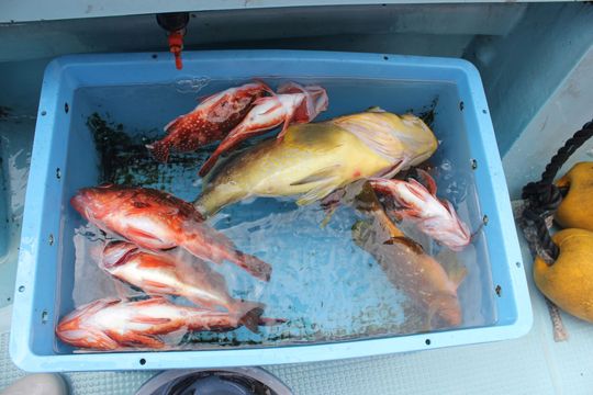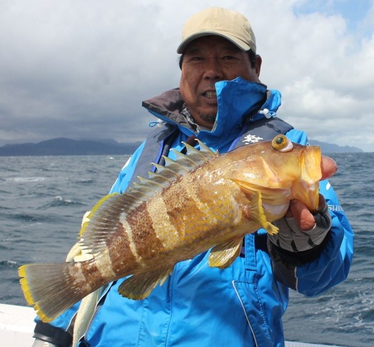僕が釣った魚は、ウッカリカサゴとアオハタ。残念ながらアコウは来ませんでした。そして、そして、この日の優勝と2位をさらったのは、とても意外な魚でした。