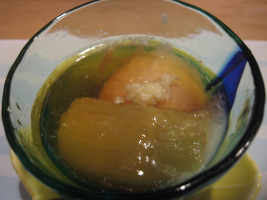 あぃ。お通しはナスの炊いたんと温たま。ダシが効いてて優しい味加減。