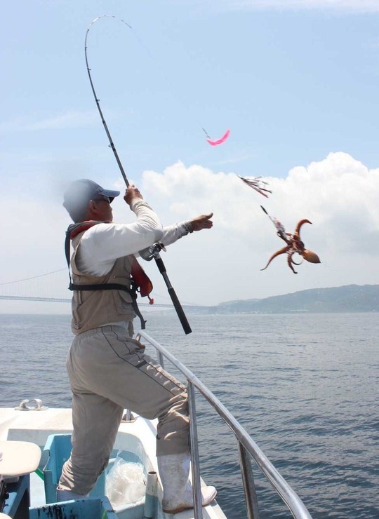 梅雨の水を吸って大きくなるといわれる明石ダコを釣りに出かけました。