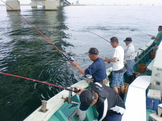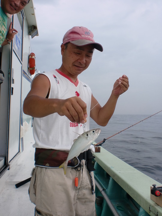 サビキ仕掛けで釣るのですが、マキエをしないのですぐにアジの群れが散ってしまいます。だから、船を何度もつけ直して狙うため、船長は大忙しです