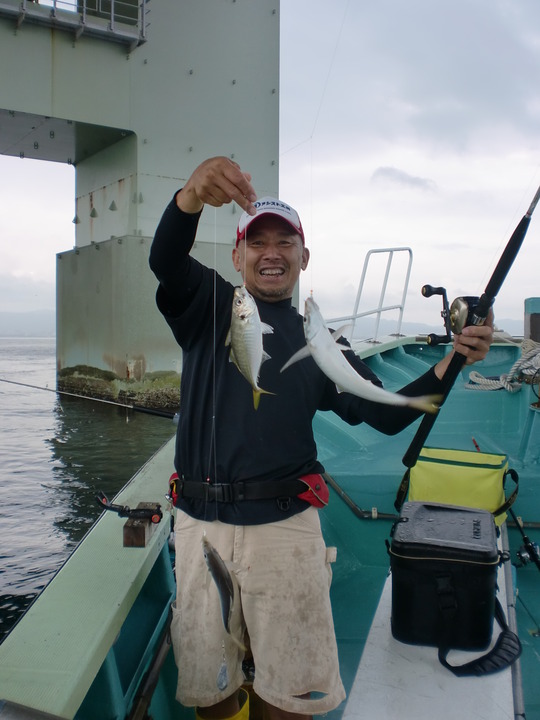 関空連絡橋の橋けた周りで黄アジ釣れ出したと聞いて、スッ飛んで行きました。