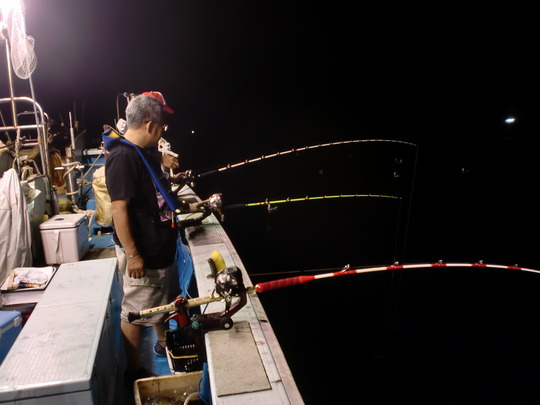 僕はマイカがほんのり釣れただけ。オール阪神さんは、久しぶりのイカ釣りでしたが、この日は豊後スッテを使って一人大漁。皆さんそれぞれに活躍の場があって、見どころもたっぷり。今日の放送をお楽しみに。