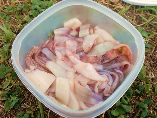 エサは冷凍のスルメイカです。
