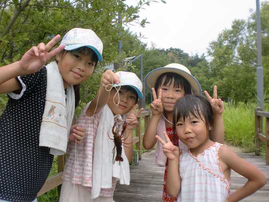 今年も孫たちを連れて狭山副池にあるビオトープへザリガニ釣りにやってきました。