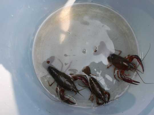 釣れるのはほとんどアメリカザリガニですが、少しだけニホンザリガニもいます。