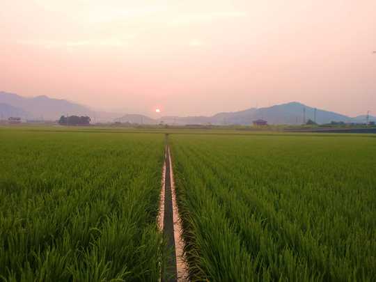 和歌山県の日高町は、県下でも有数の米どころで、田がのびやかに広がっています。