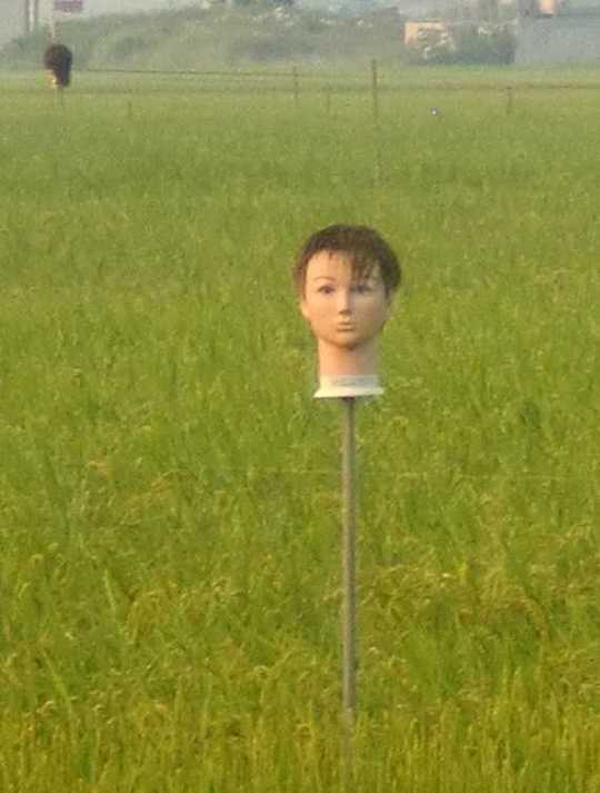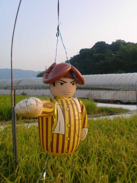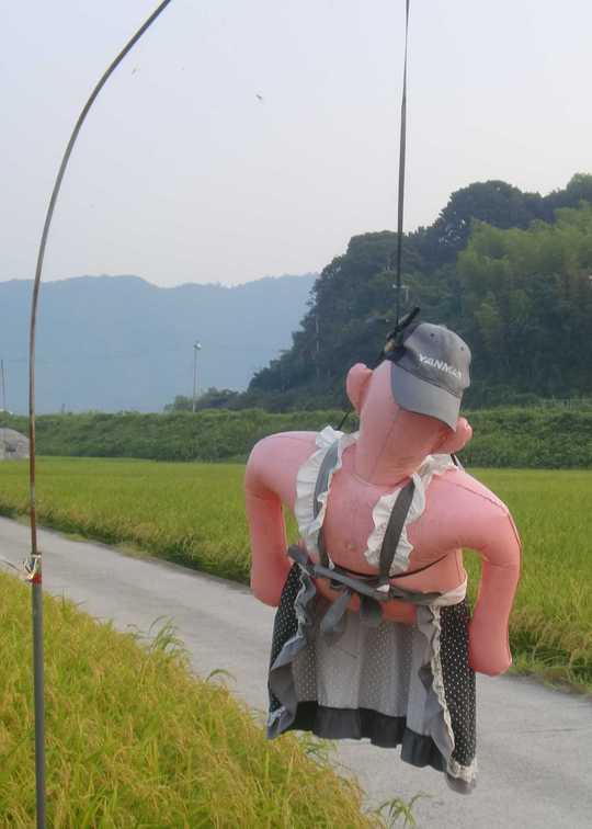 そんな田んぼの中を散策していると、面白い案山子(かかし)を見つけました。