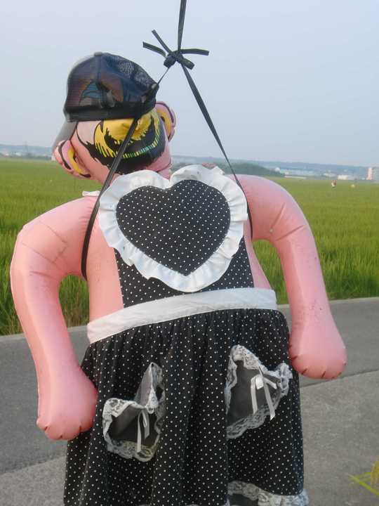 この案山子、バルーンで出来ています。写真ではよく分かりませんが、ヤンマーの帽子をかぶっているところがいかにも農村らしくていいですね