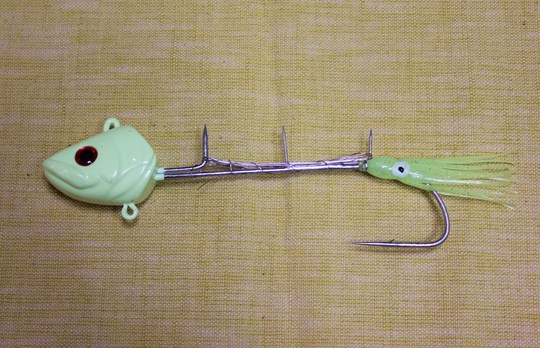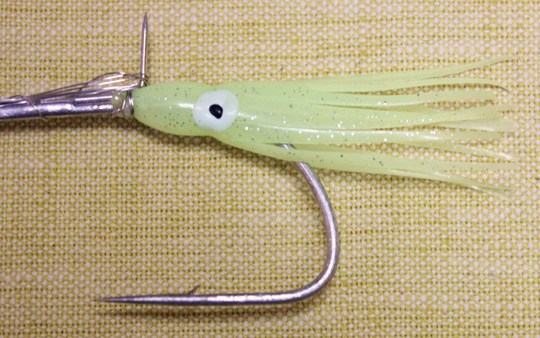 といって、蛍光色のタコベイトをくれた。僕は元来、仕掛けはシンプルな方がいいと思っているので、余り仕掛けに余分なものは付けない主義なのだが、折角の行為だし、付けてもさほど邪魔になるようなものではなかったので、鰯の頭も信心から…物は試しにと付けてみるにした。さらに仲乗りさんは「ピンクと白のコンビになったのもいいというてます」と教えてくれた。