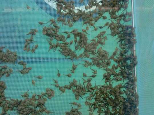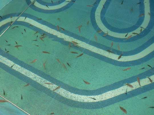 9月8日、京セラドーム大阪で開かれる船釣りフェスタ2013で大阪府水産総合研究所の主任研究員、鍋島靖信さんを招いて、タチウオをテーマにトークショウが開かれるため、打ち合わせに水産総合研究所へ出かけました。そのあとめったにない機会なので場内を見学させていただきました。
