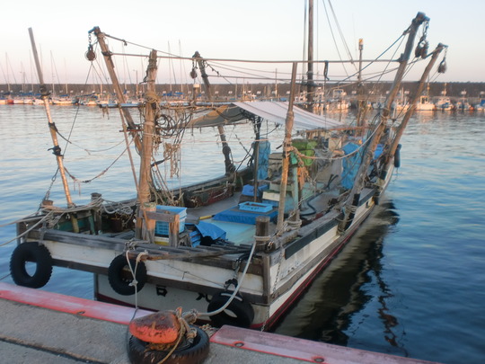 (これは漕ぎ=底曳き=の船ですよ)