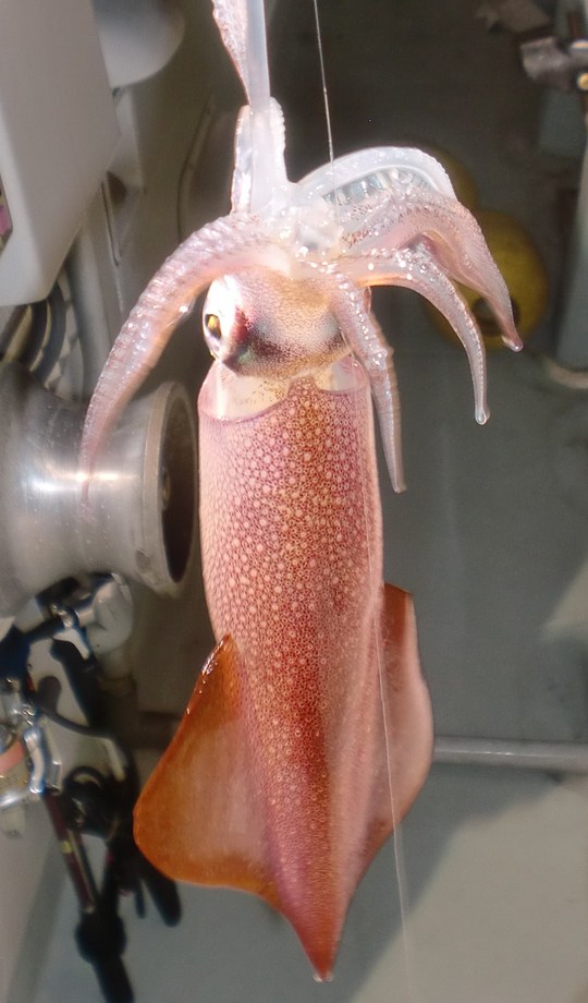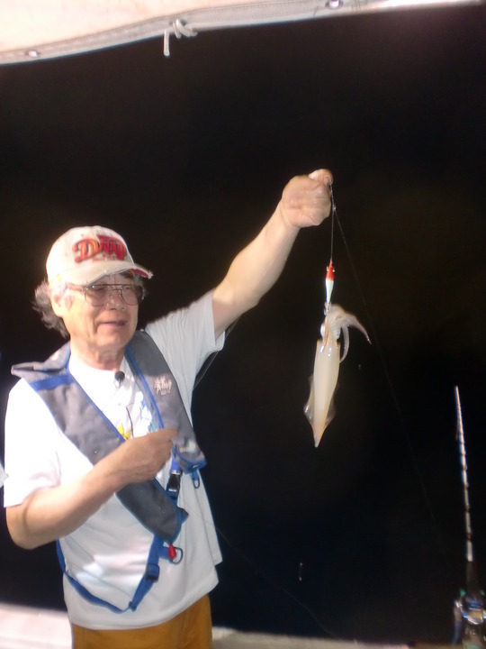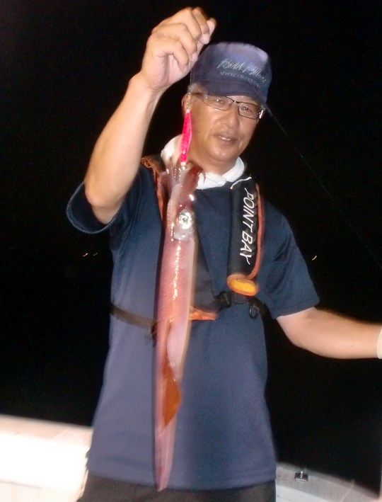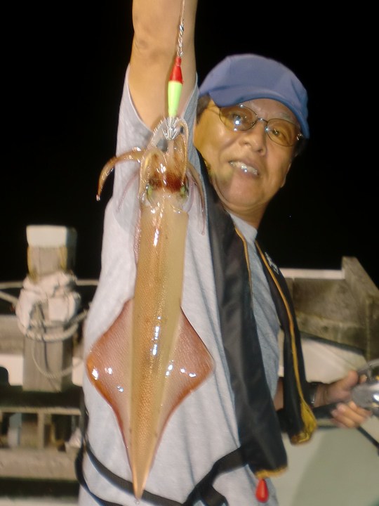 このところ浜坂沖の近場で型のいいシロイカ(ケンサキイカ)がよく付きだしたというので、イカ好きが集まって出かけたのです。