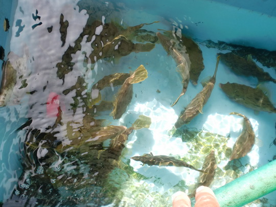 こんなんじゃあダメなんです。イケスの底が見えないぐらい釣らないと予選は通過しません。ちなみにこの日、トップで予選を通過した人は70匹台の釣果でした。僕は20匹台ですから、無理ですよねぇ。(笑)